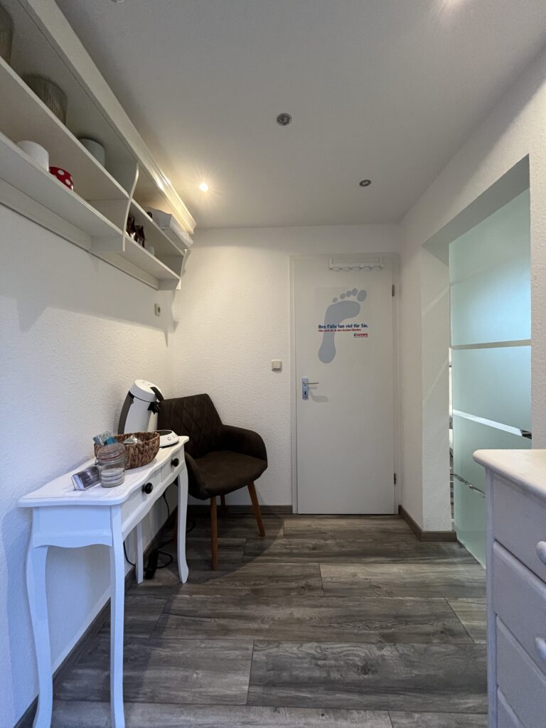 Seit 2020 befindet sich meine Räumlichkeiten im schönen Kalletal-Bentorf. Mit einem kleinen Warteraum und einem geräumigen Behandlungsraum, bietet sie alles, was für eine professionelle Fußpflege und Ihr Wohlbefinden benötigt wird.